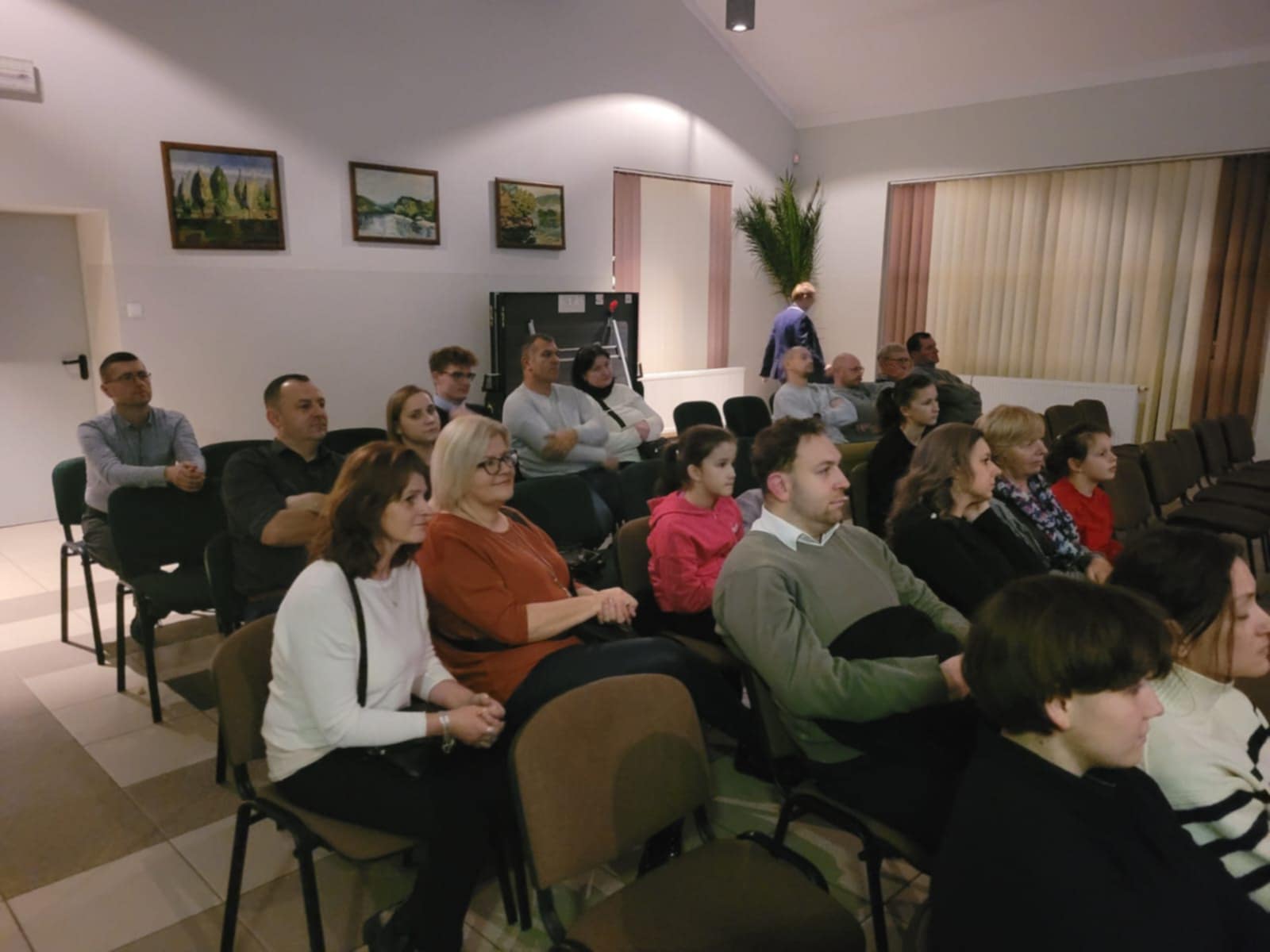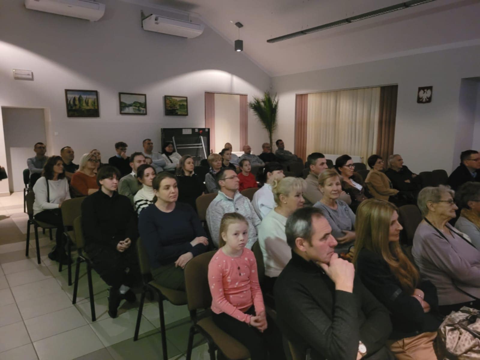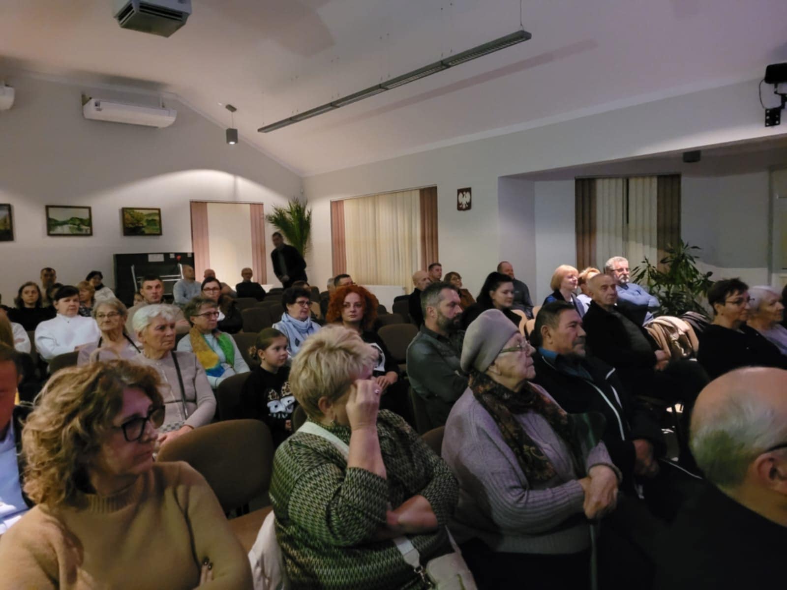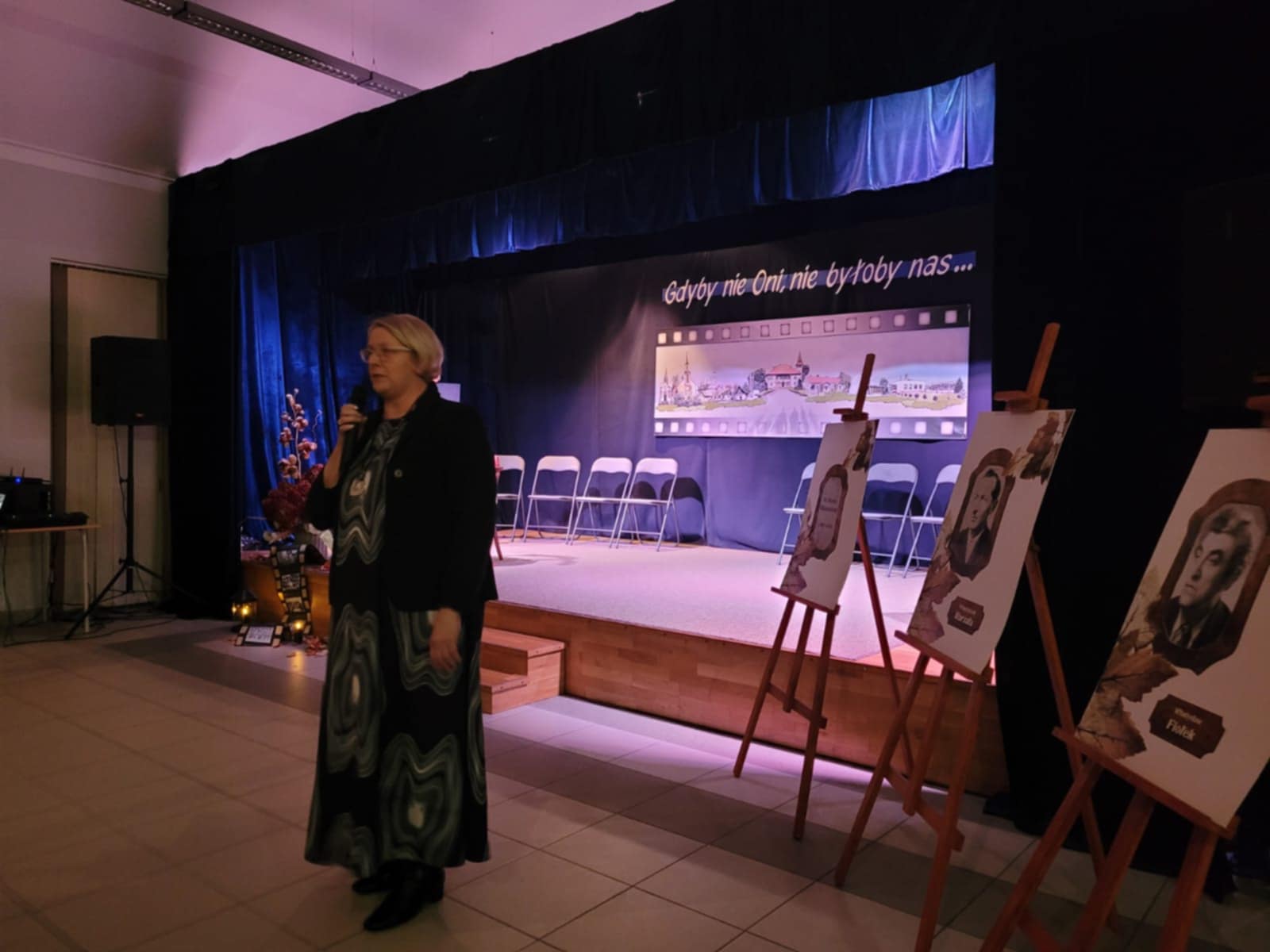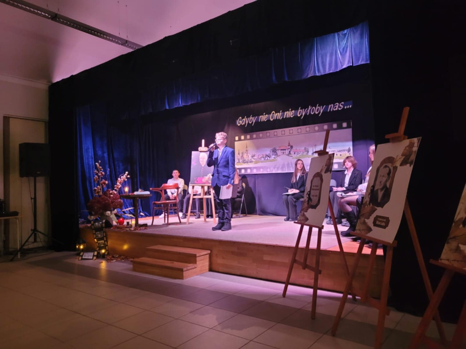 Wieczór obfitował w momenty wywołujące głębokie wzruszenie. Cisza, w której wybrzmiewały słowa o przemijaniu, delikatne światło lampek podkreślających atmosferę listopadowej zadumy, twarze lokalnych bohaterów spoglądające z portretów, kolorowy szkic budowli charakterystycznych dla miejscowości Łęg Tarnowski tworzyły scenografię, która nie tylko przykuwała wzrok, ale również oddziaływała na wyobraźnię i serce.