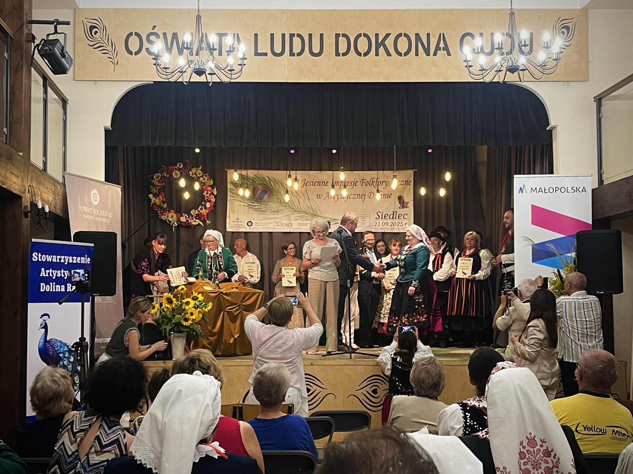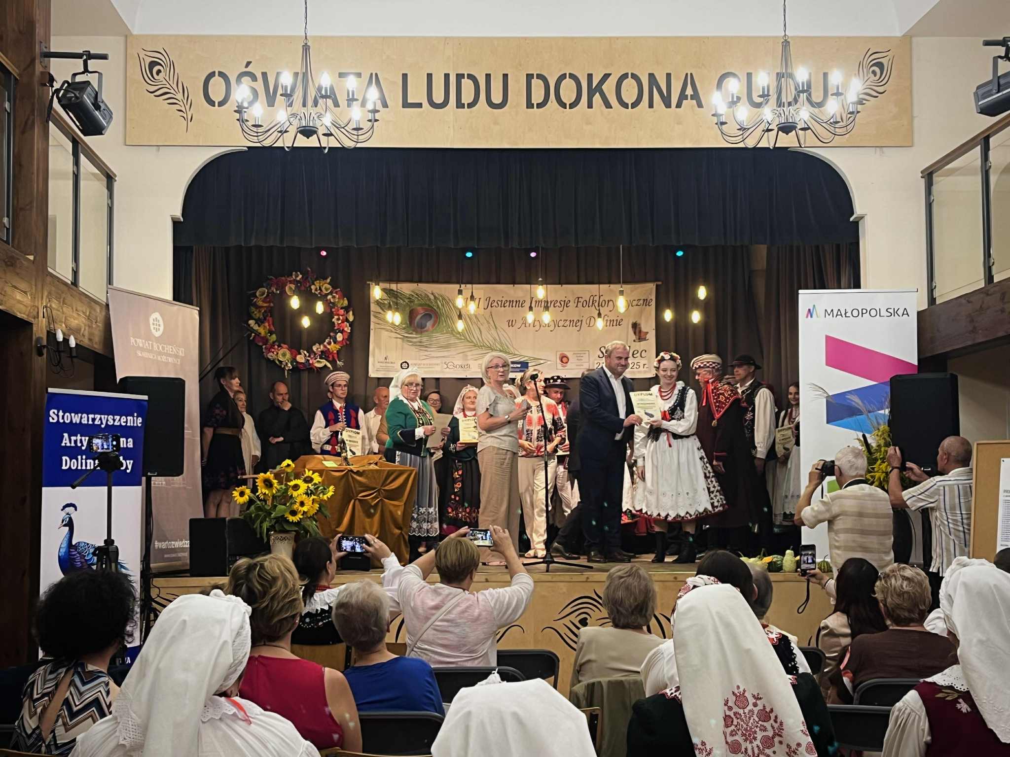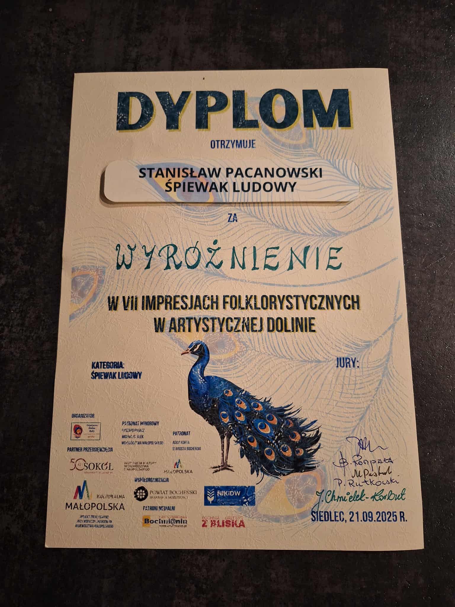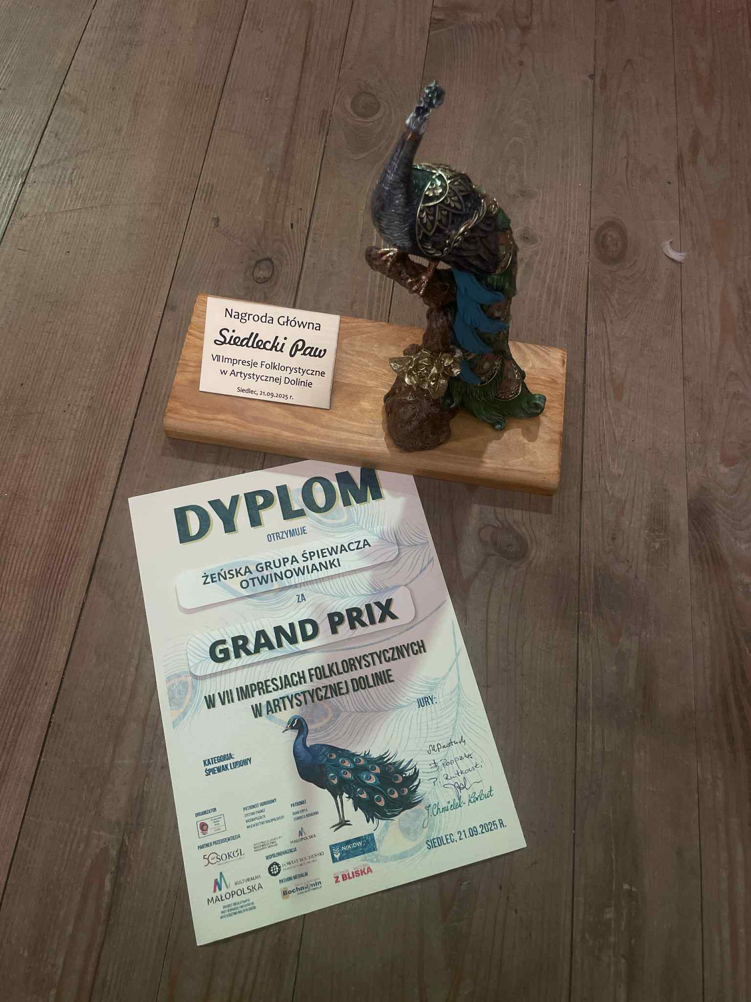 Z ogromną dumą gratulujemy Żeńskiej Grupie Śpiewaczej „Otfinowianki” zdobycia nagrody głównej – Grand Prix „Siedleckiego pawia” – podczas VII Impresji Folklorystycznych w Artystycznej Dolinie w Siedlcu. To wyjątkowe wyróżnienie jest dowodem wysokiego poziomu artystycznego i pięknego kultywowania tradycji muzycznych. Serdeczne gratulacje kierujemy również do solistów – Sylwii Cabaj i Stanisława Pacanowskiego – wyróżnionych w kategorii śpiewaków ludowych. To ogromny sukces, który potwierdza talent i zaangażowanie artystów. Wyrazy uznania składamy także pani Marcie Czechowskiej za profesjonalne przygotowanie zespołu i solistów. Życzymy dalszych sukcesów, inspiracji i satysfakcji z pielęgnowania dziedzictwa folklorystycznego.