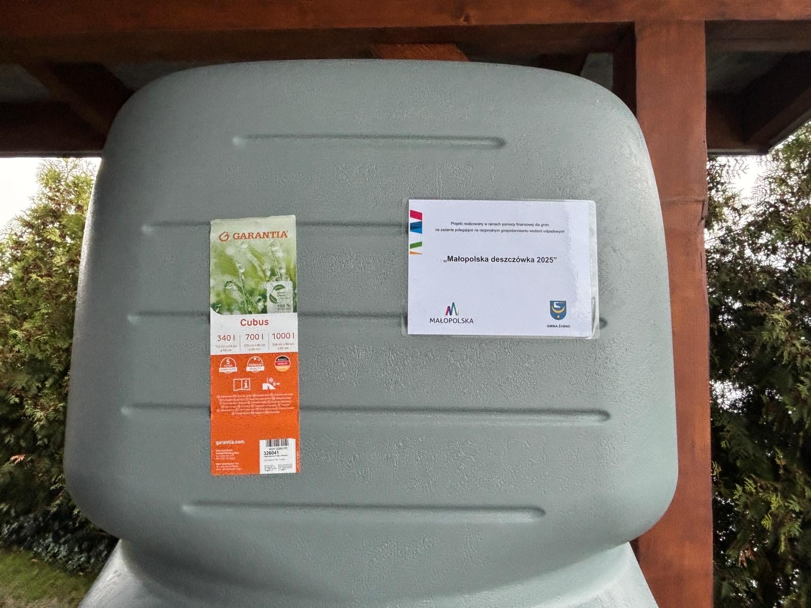 Gmina Żabno zakończyła realizację projektu pn. „Małopolska Deszczówka 2025” w ramach zadania pn. „Zaopatrzenie mieszkańców Gminy Żabno w zbiorniki na deszczówkę”.