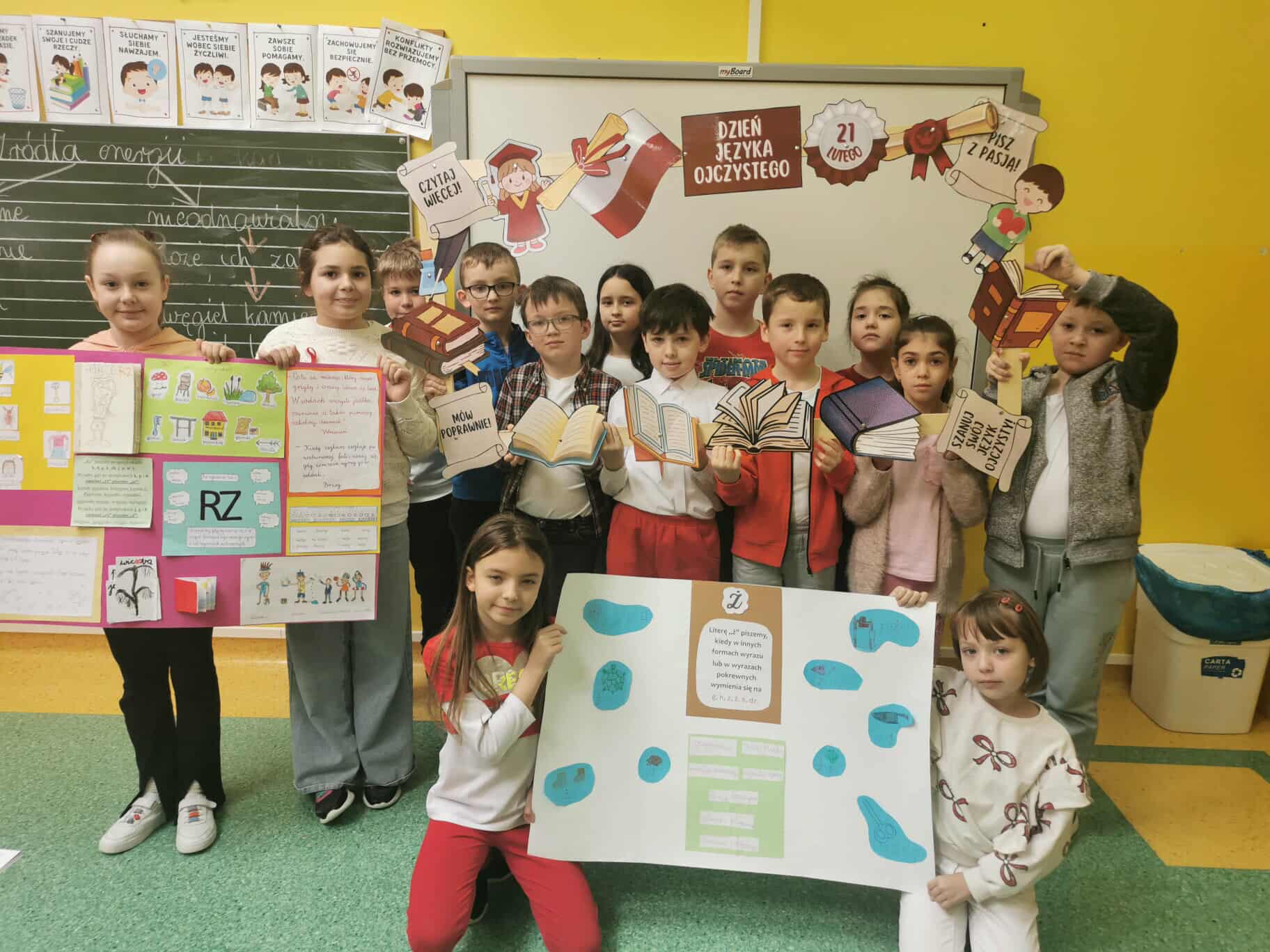 Centralnym punktem święta było przygotowanie przez każdy zespół klasowy tematycznych plakatów, które w ciekawy i kreatywny sposób ukazywały bogactwo oraz zawiłości naszego języka. Barwne i bardzo kreatywne prace uczniów, zawierające wiele interesujących informacji dotyczących różnych aspektów polszczyzny, ozdobiły szkolne korytarze, tworząc wyjątkową i inspirującą atmosferę.