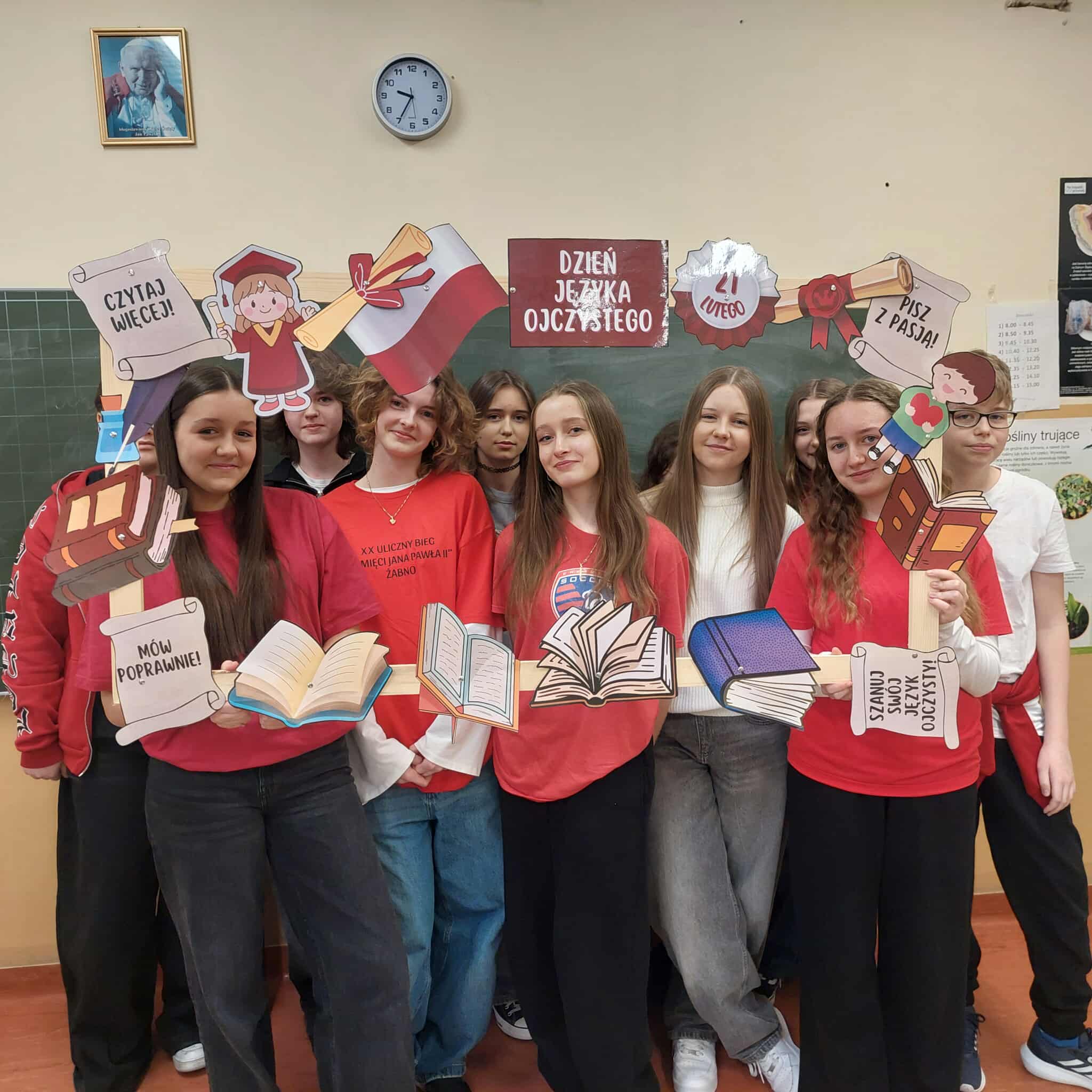 Niezapomnianą pamiątką tego dnia są wspólne zdjęcia klasowe wykonywane w specjalnie przygotowanej „językowej” fotoramce, której zadaniem było m.in. promowanie czytelnictwa. Uśmiechom i dobrej zabawie nie było końca, a dzieci i młodzież w tak zajmujący oraz nietypowy sposób zdobywały i utrwalały wiedzę o języku ojczystym.