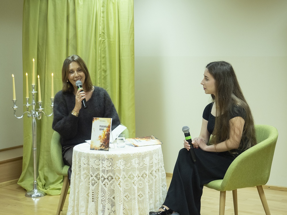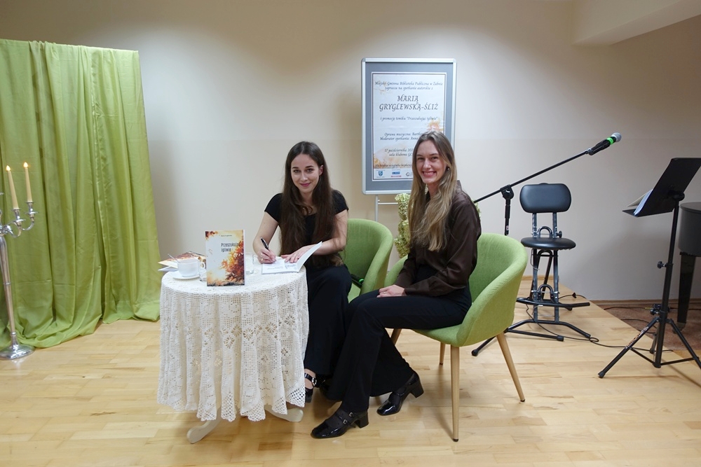 Moderatorem spotkania była Anna Adamczewska, nauczycielka Marii Gryglewskiej w czasach gimnazjalnych, nie obyło się więc bez wspomnień. Paniom na gitarze towarzyszył Bartłomiej Śliż, prywatnie mąż poetki. Maria Gryglewska w charakterystyczny dla siebie, barwny i momentami humorystyczny sposób opowiadała o swoim życiu, pasjach, inspiracjach i twórczości.