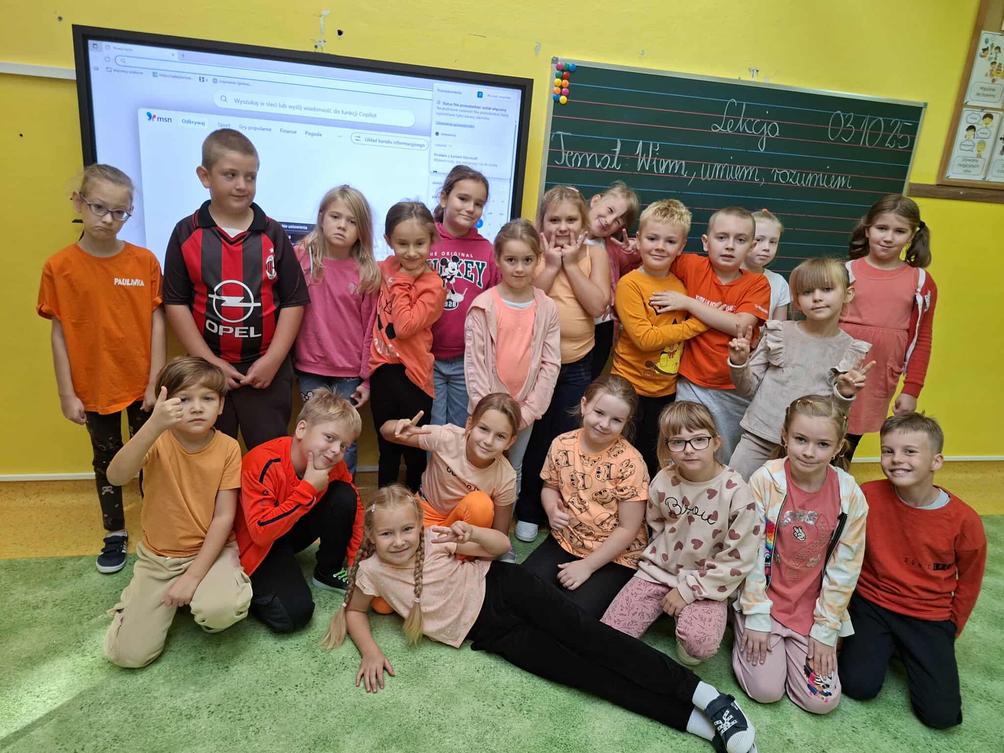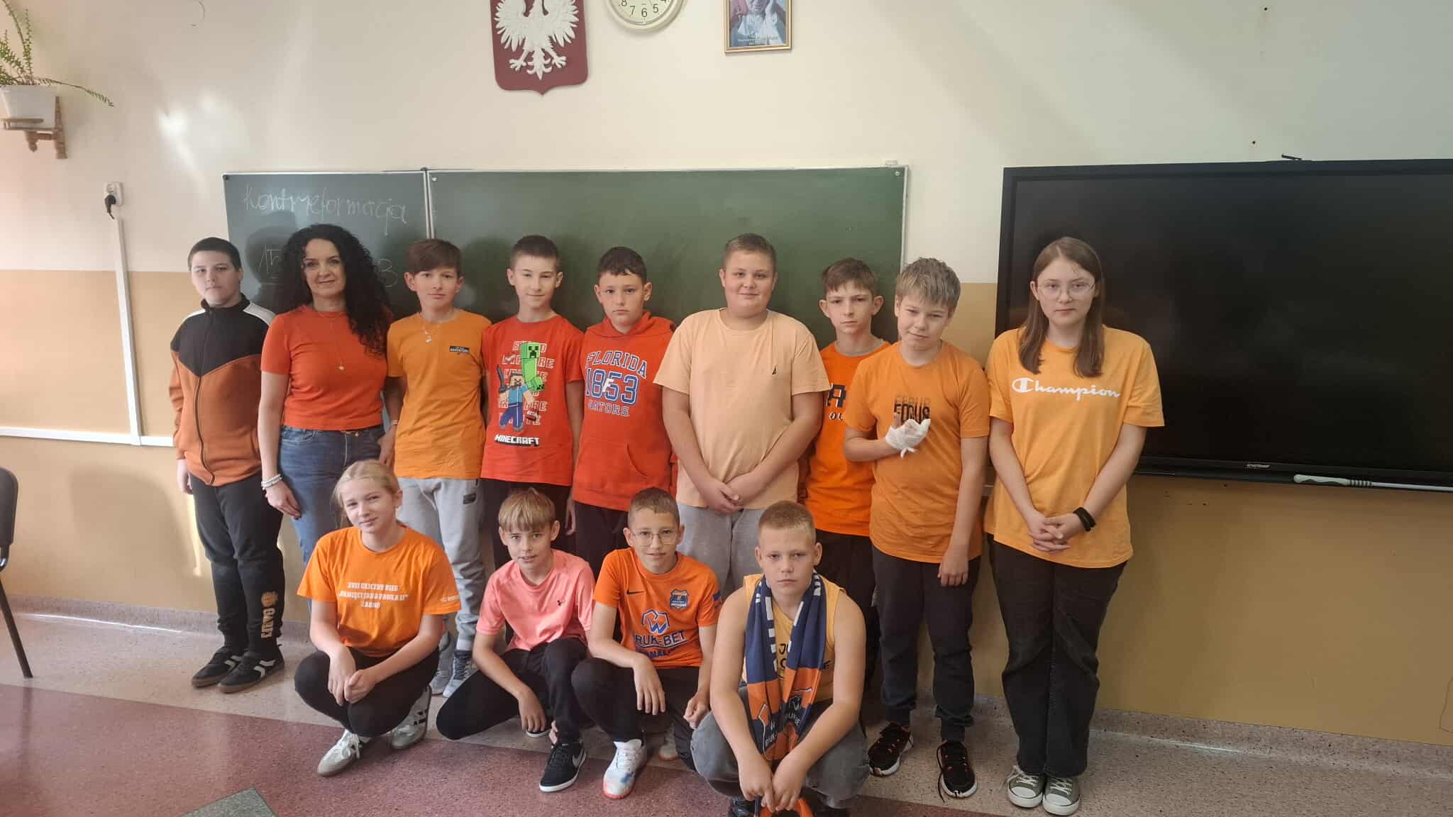 W ramach Tygodnia Przeciwdziałania Przemocy Rówieśniczej w dniu 03 października br. uczniowie i nauczyciele Szkoły Podstawowej w Łęgu Tarnowskim ubrali się na kolor pomarańczowy – symbol sprzeciwu wobec wszelkich form przemocy. Dzień Koloru Pomarańczowego, bo tak nazwana została ta inicjatywa, poprzedzony był pogadanką przeprowadzoną przez szkolną psycholog, która szczegółowo wyjaśniała dzieciom i młodzieży, co oznacza ten kolor i dlaczego wspólnie mówimy „STOP przemocy!”. Podczas wspomnianego Dnia uczniowie wysłuchali także informacji o znaczeniu symboliki oraz przypomniano, jak ważne są szacunek, empatia i życzliwość wobec innych. Na szkolnych korytarzach pojawiły się także gazetki i plakaty informacyjne, na których można przeczytać m.in. czym jest przemoc rówieśnicza, jakie są jej formy, jak reagować, gdy jesteśmy jej świadkami lub ofiarami, oraz gdzie szukać pomocy – zarówno w szkole, jak i poza nią. Aby podkreślić, że siła słów jest ogromna, ogłoszony został pod patronatem Dyrektora Szkoły konkurs plastyczny pt. „Twoje słowa budują mój świat”. Uczniowie biorący udział w tym konkursie mają za zadanie pokazać w swoich pracach, jak ważne jest mądre, właściwie dobrane i wspierające słowo.