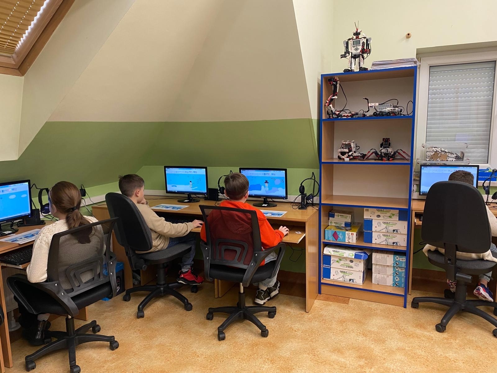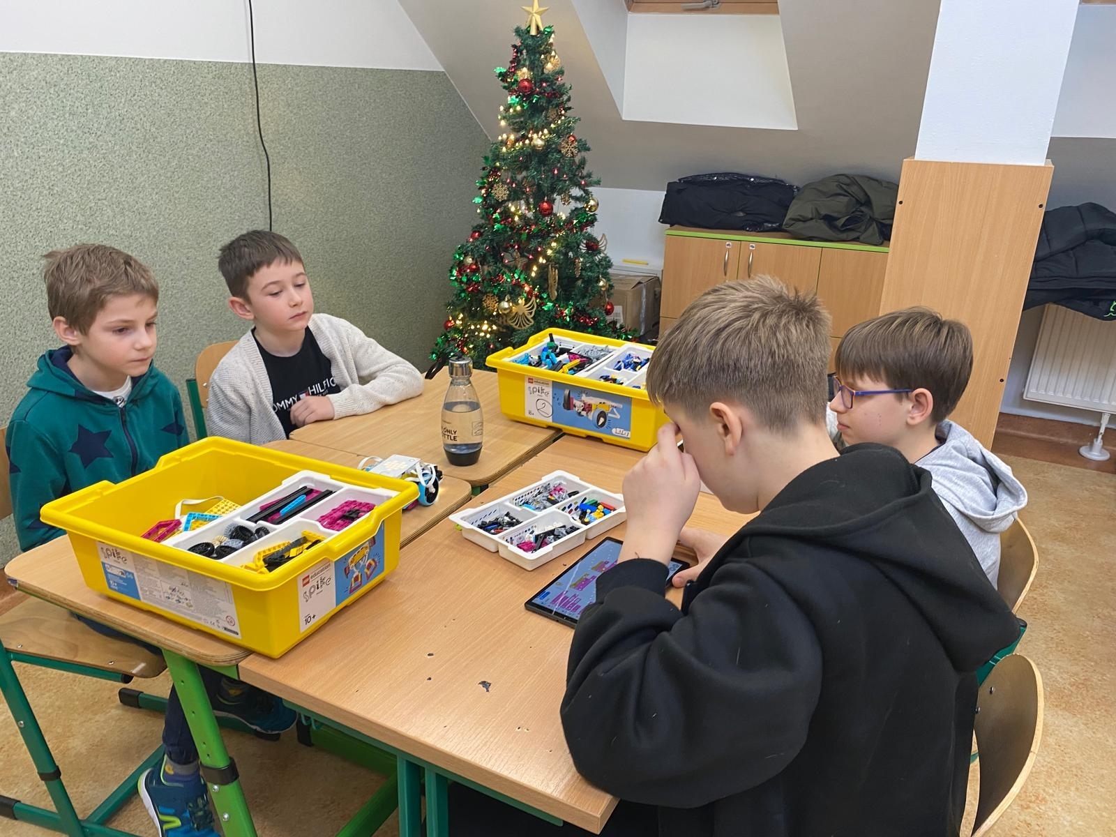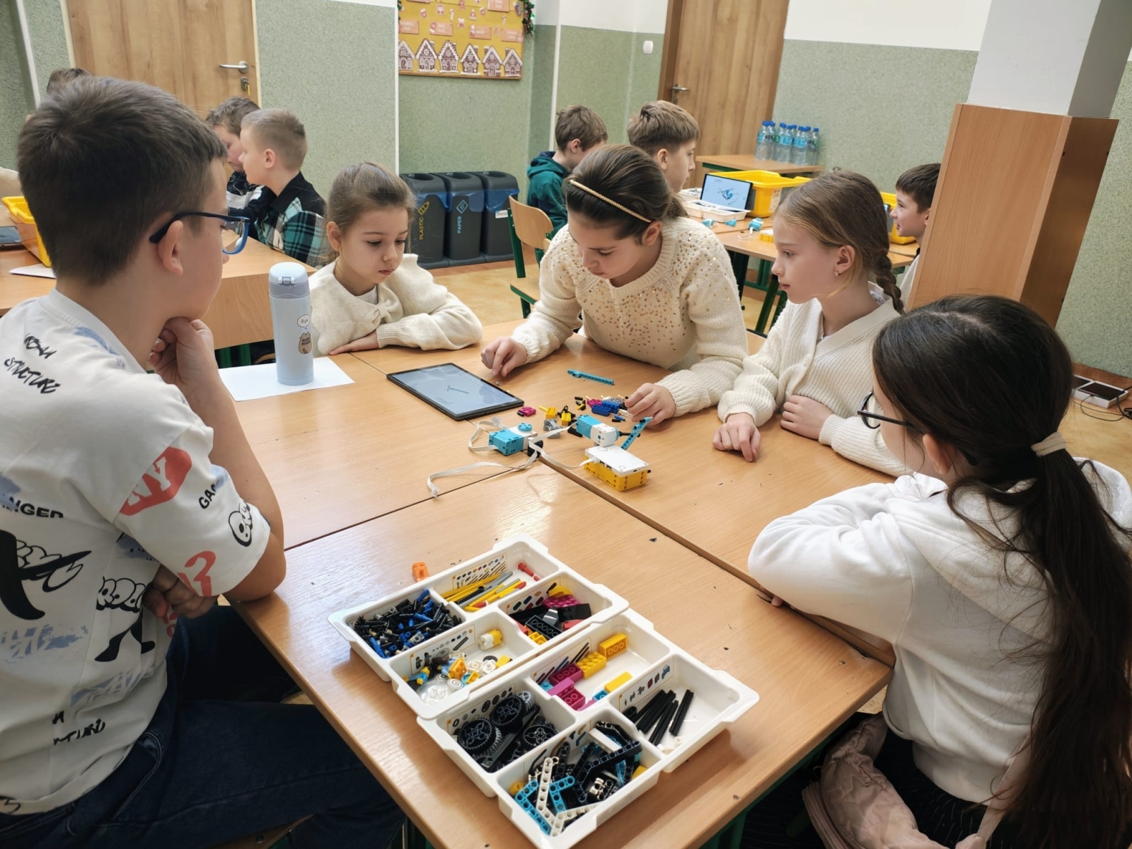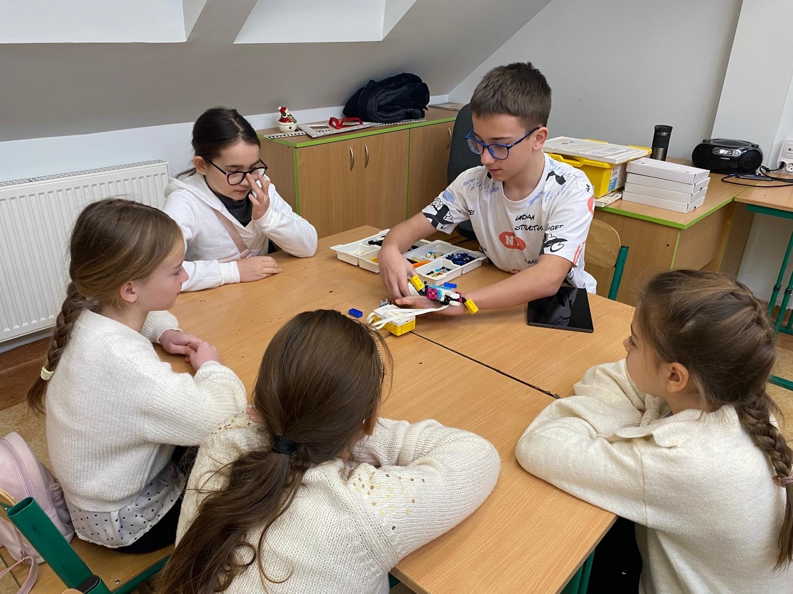 W czasie oczekiwania na wyniki dzieci uczestniczyły w zajęciach edukacyjnych z robotami SPIKE, prowadzonych przez uczniów klasy VII pod opieką pani Barbary Traczyk. Uczestnicy konkursu mieli możliwość budowania i programowania robotów SPIKE oraz skorzystali z ciepłego posiłku zapewnionego przez organizatora.