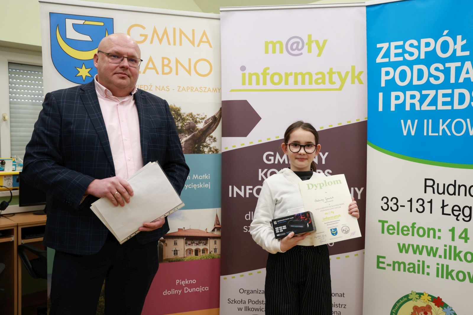 Ogłoszenie wyników i wręczenie nagród odbyło się 14 stycznia o godz. 12:15. Nagrody wręczył dyrektor Zespołu Szkoły Podstawowej i Przedszkola w Ilkowicach, pan Mirosław Piotrowski. Tytuł Małego Informatyka Gminy Żabno zdobył Piotr Tracz, uczeń klasy II Szkoły Podstawowej w Ilkowicach.