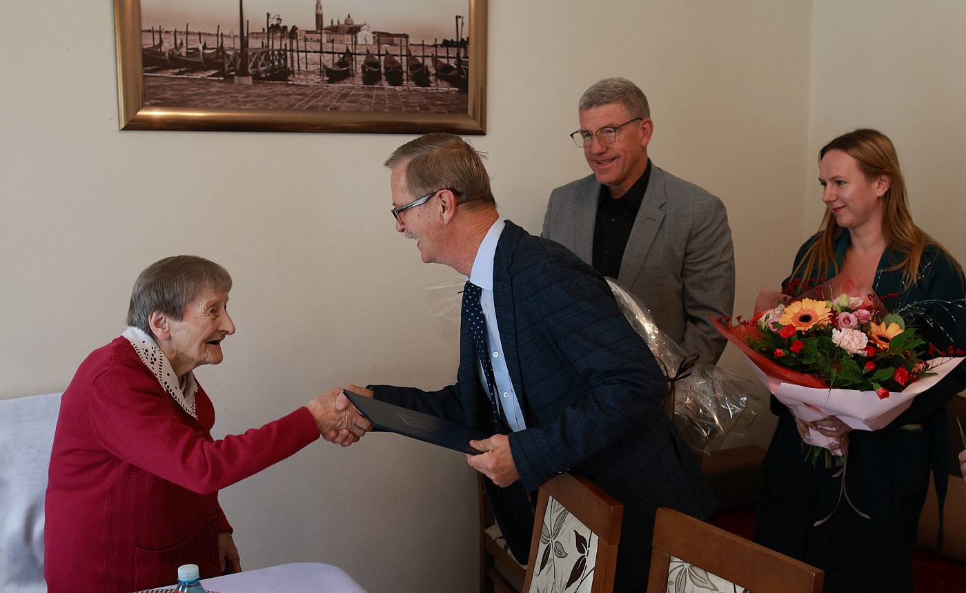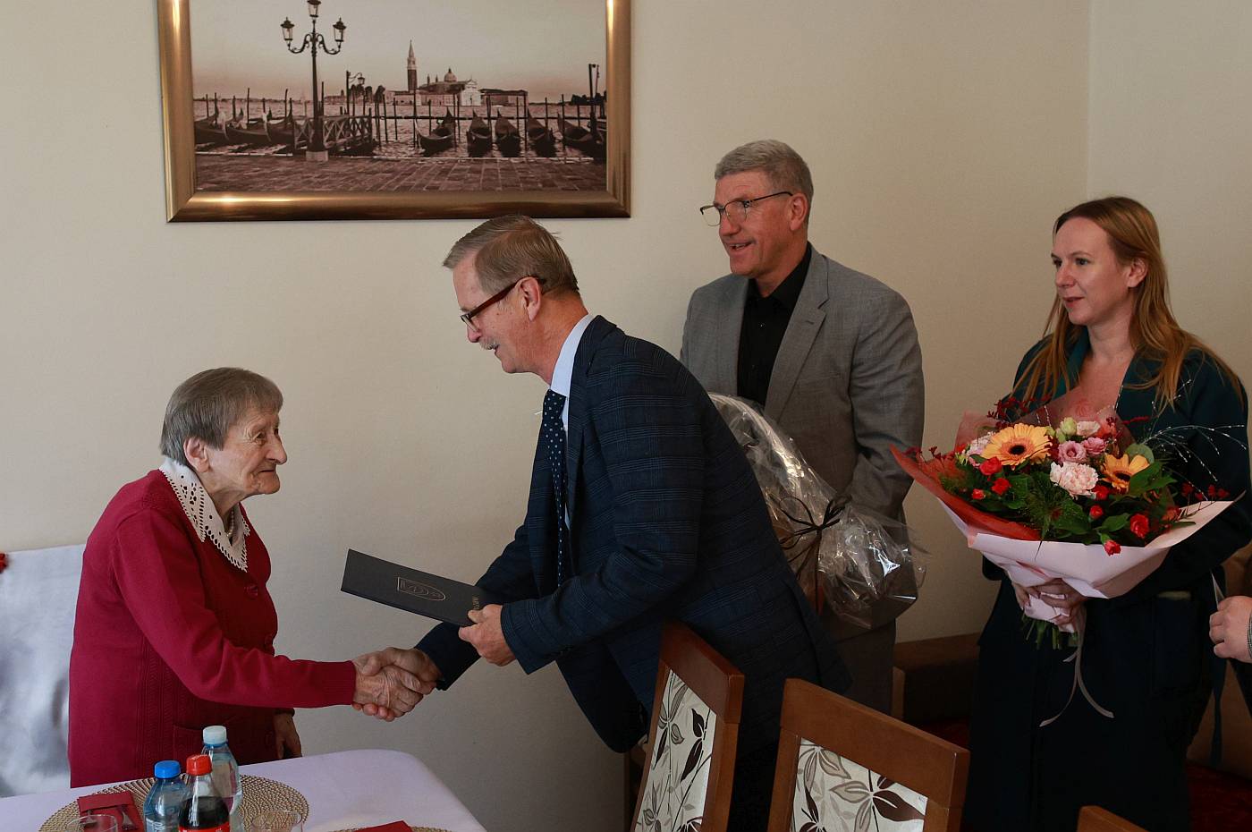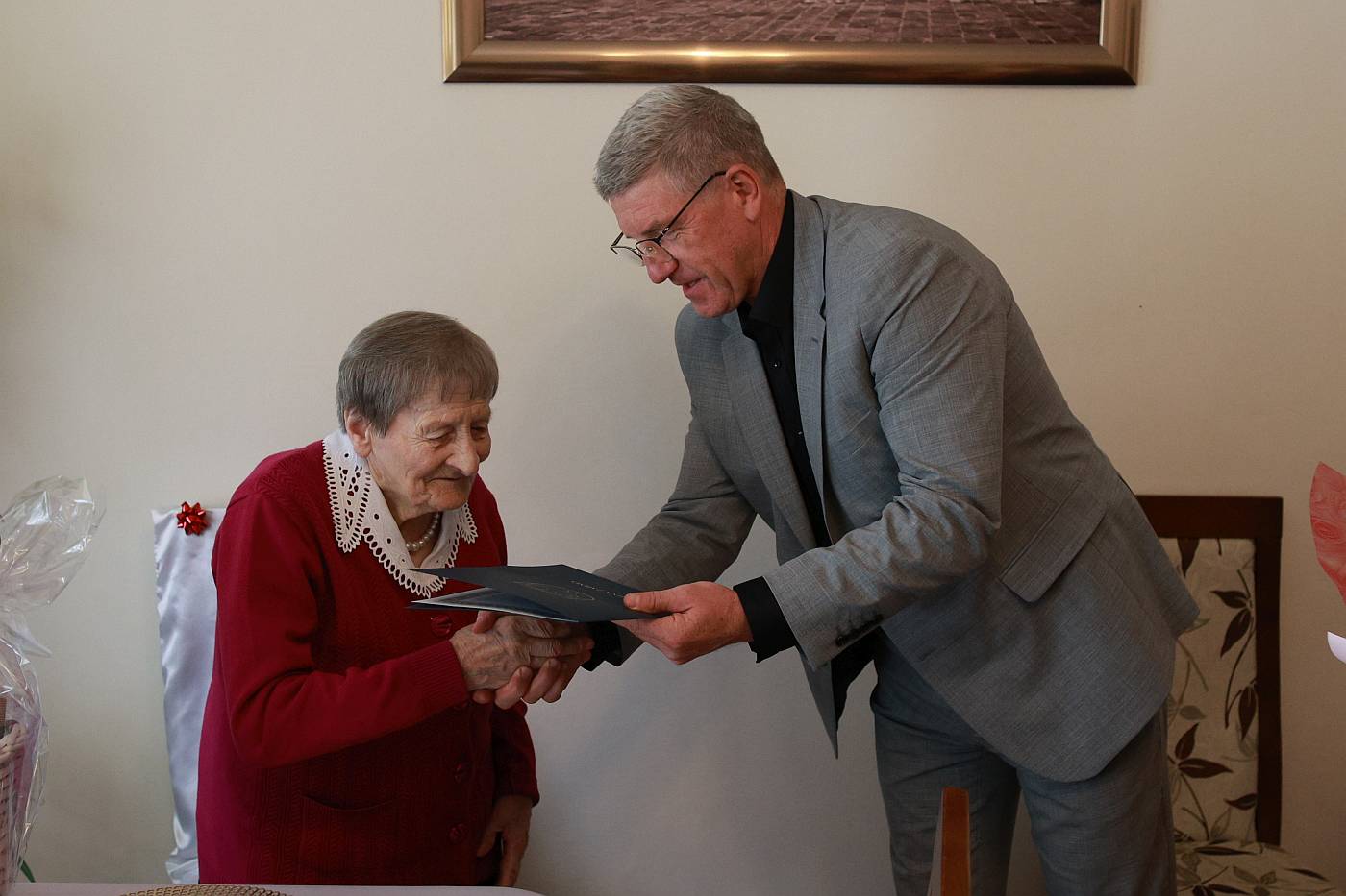 Podczas wizyty wręczono Pani Stanisławie kwiaty, list gratulacyjny oraz pamiątkowy upominek. Przedstawiciele władz pogratulowali dostojnego wieku, życząc kolejnych lat w zdrowiu i spokoju.
