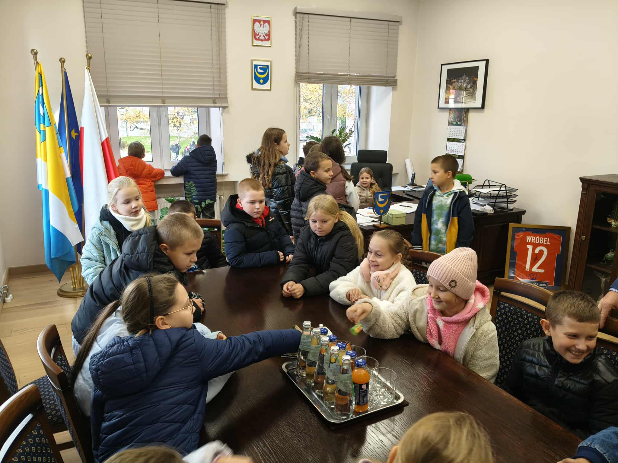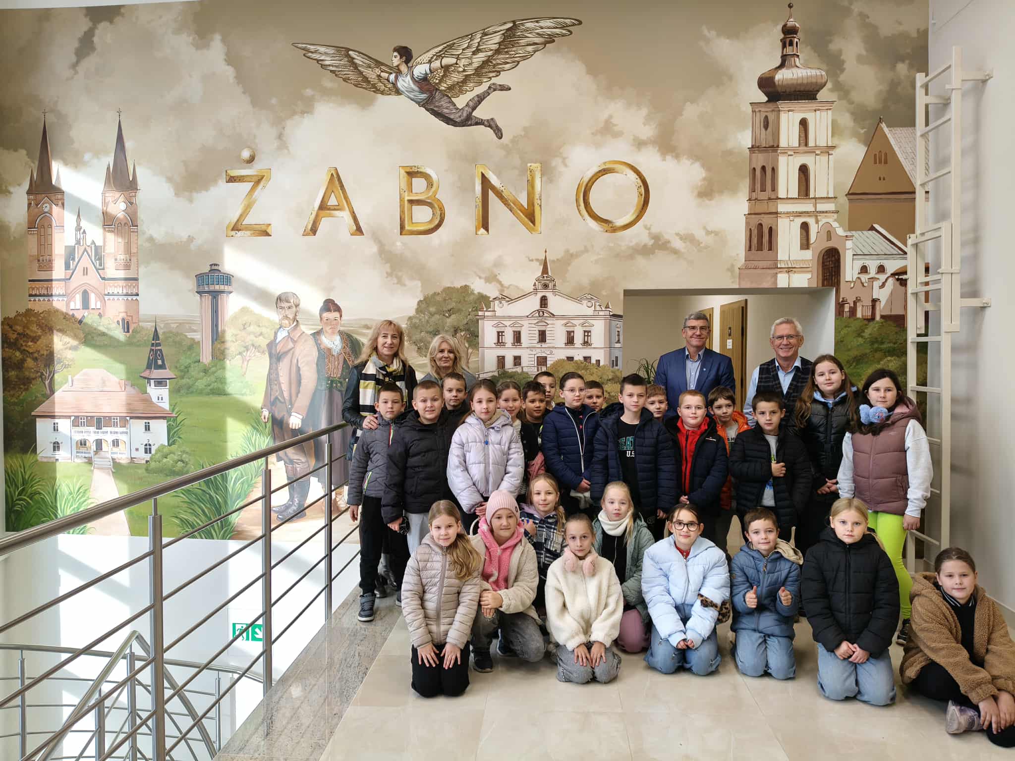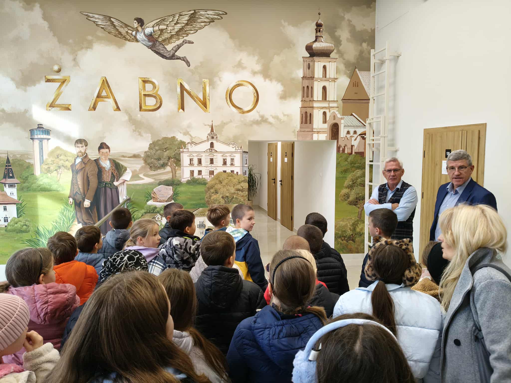 Pierwszymi zwiedzającymi nowy mural byli uczniowie Szkoły Podstawowej w Żabnie. Młodzież nie tylko podziwiała artystyczną opowieść zapisaną na ścianie urzędu, ale miała również wyjątkową okazję zwiedzić sam budynek, w tym gabinet burmistrza Żabna. Spotkanie to stało się okazją do rozmowy o historii miasta, pracy samorządu oraz znaczeniu dziedzictwa kulturowego w życiu lokalnej społeczności.