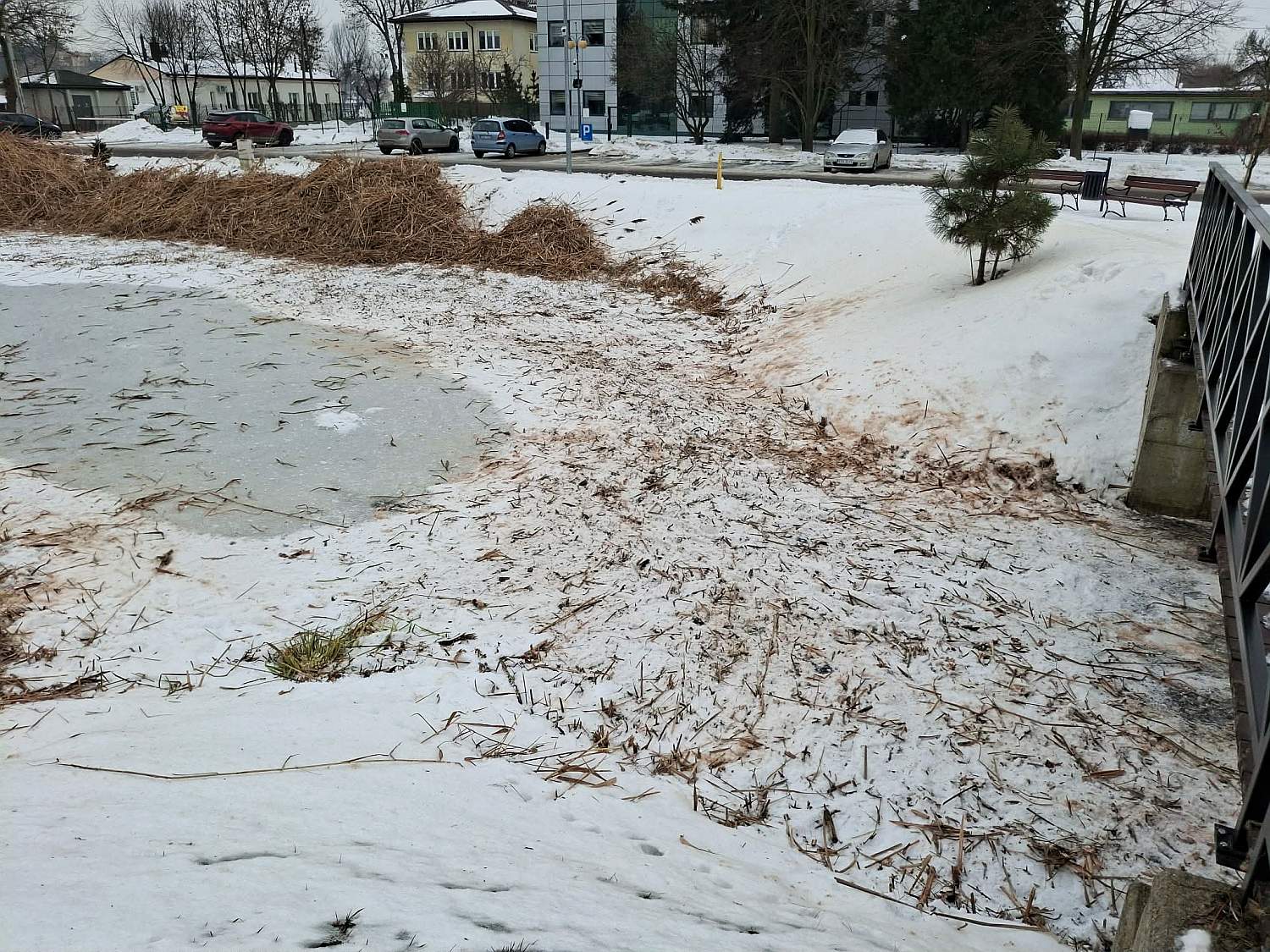 Okres zimowy sprzyja realizacji prac porządkowych i konserwacyjnych na terenach zielonych. Wykorzystując zimowe warunki, przeprowadzono oczyszczenie z zarośli stawu zlokalizowanego przy ul. Św. Jana w Żabnie.